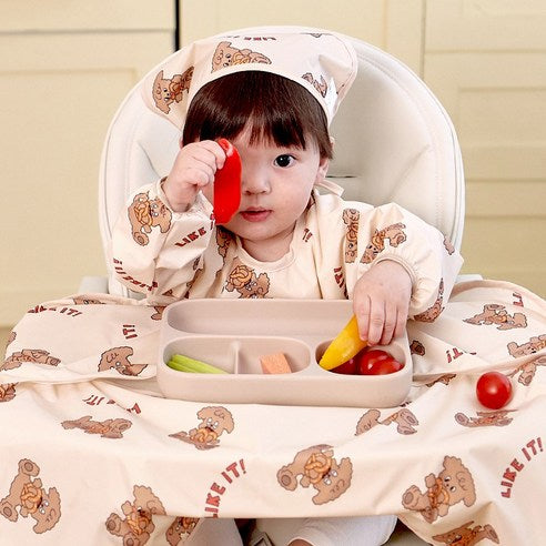 Aijoo table-integrated baby food bib with long sleeves and open design(colour-Pretzel) - MOQ 3